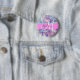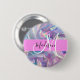 Girly pink, purple and aqua holographic iridescent monogram name and initial button. Your custom name and monogram are written in an elegant hand lettered script with a pink background. A perfect birthday or Christmas gift!