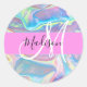 Girly Pink Holographic Iridescent Monogram Name Classic Round Sticker
