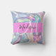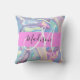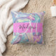 Girly pink, aqua and turquoise holographic iridescent monogram name and initial throw pillow. Your custom name and monogram are written in an elegant hand lettered script with a pink background. A perfect birthday or Christmas gift!