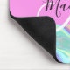 Girly pink, peach and aqua holographic iridescent monogram name and initial mouse pad. Your custom name and monogram are written in an elegant hand lettered script with a pink background. A perfect birthday or Christmas gift!