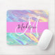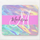 Girly Pink Holographic Iridescent Monogram Name Mouse Pad
