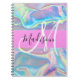 Girly pink, peach and aqua holographic iridescent monogram name and initial notebook. Your custom name and monogram are written in an elegant hand lettered script with a pink background. A perfect birthday or Christmas gift!