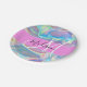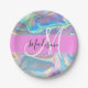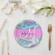 Girly Pink Holographic Iridescent Monogram Name Paper Plate