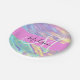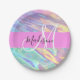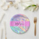 Girly Pink Holographic Iridescent Monogram Name Paper Plate