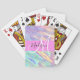 Girly Pink Holographic Iridescent Monogram Name Playing Cards