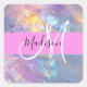 Girly Pink Holographic Iridescent Monogram Name Square Sticker