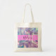 Girly pink, purple and aqua holographic iridescent monogram name and initial tote bag. Your custom name and monogram are written in an elegant hand lettered script with a pink background. A perfect birthday or Christmas gift!