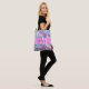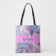 Girly pink, purple and aqua holographic iridescent monogram name and initial tote bag. Your custom name and monogram are written in an elegant hand lettered script with a pink background. A perfect birthday or Christmas gift!