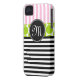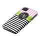 GIRLY PINK LIME GREEN BLACK STRIPES iPHONE 4 CASE
