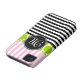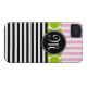 GIRLY, PINK, BLACK STRIPES AND LIME GREEN POLKA DOTS PATTERN iPHONE 4 CASE. ELKE CLARKE© FOR MONOGRAM GALLERY. Personalise this stylish iPhone case as a gift for her with a monogram initial in your colour and font choice to create a trendy, chic monogrammed cell phone case. Want different colours? Please contact store owner.