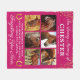 Girly pink horse photo fleece blanket featuring 6 precious pictures of your beloved pet animal, gold horseshoes & glitter, the text "in loving memory of", your horses name, birth/death dates, and the sympathy quote "your presence we miss, your memory we treasure, loving you always, forgetting you never".