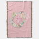 A chic pretty pink initial monogram throw blanket, featuring a beautiful white script name with a pink script surname initial that is framed by a watercolour floral rose garland on a peach pink background. Personalise to create a special keepsake gift to treasure! Designed by Thisisnotme©