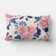 Girly Pink Navy Blue Country Painted Flowers Lumbar Cushion