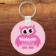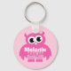 Girly pink owl cartoon keychain with name. Cute gift idea for girls. Funny bird illustration / animal drawing design.