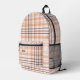 Girly Pink Peach Check Plaid Monogram Initials Printed Backpack