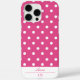 Add a touch of playful charm to your phone with this chic iPhone 16 Pro Max case featuring a pink and white polka dot pattern. Designed for those who love a fun and feminine style, this case is also customisable to make it uniquely yours. Customise it with your first name in a beautiful script, and add your initials in a stylish monogram for an extra dose of sophistication. Also makes a great personalised gift for birthdays, Christmas, and all occasions.