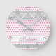 Girly Pink Polka Dots with Swirls and Name Round Clock