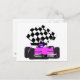 Send a quick note with this Pink Race Car with a winning chequered flag postcard! . Add information for an event and use as an invitation, too! * Add background colour and/or a photo to personalise.