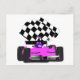 Girly Pink Race Car with Chequered Flag Postcard
