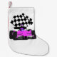 Girly Pink Race Car with Chequered Flag Small Christmas Stocking