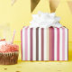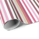 A girly pink wide horizontal striped wrapping paper in a pink, dark red, and white striped pattern. A modern and preppy variegated stripes pattern in bold yet feminine colours.