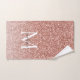 Girly Pink Rose Gold Glitter Glam Monogram Script Bath Towel Set