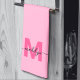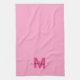 Personalised Custom Create Your Own Girly Bright Pink and Magenta Initial Name Monogram Kitchen Towel. Add a vibrant and feminine touch to your kitchen with this stylish monogrammed towel. Designed for a tri-fold style, it features a bright happy pink background, a bold magenta hot pink initial, and a flowing black script name, creating a playful and chic look. Perfect for everyday use or as a decorative accent, this towel makes a thoughtful and practical gift for housewarmings, birthdays, holidays, or even as a wedding gift when customised with a last name. Its girly charm also makes it a cute addition to a college dorm, apartment, or even a sorority house, combining fun and functionality effortlessly.