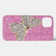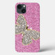 Girly Pink Silver Glitter Diamonds Butterfly Case-Mate iPhone Case