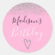 Girly Pink Silver Glitter Sparkles Heart Birthday Classic Round Sticker