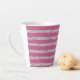 Girly Pink Silver Sparkly Confetti Stripes Latte Mug
