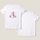 If you appreciate a pink holiday design you'll love this pink snowman made of marshmallows adorned in pink hat and scarf with twig arms. Random pink snowflakes fluttering down around him with pink marshmallows and a small pink mushroom beside him along with a pink Christmas tree. A playful winter t-shirt design.