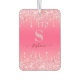 This elegant air freshener features pink glitter drips on a soft pink background. Personalise with your initial and name in a trendy script. Easy to customise by clicking "Personalise".