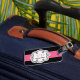 Add your first and last name, and contact details to create your personalised bag tag! Mod stylish bright pink with stitch details in white, on solid black background. This eyecatching colour is guaranteed to make your luggage stand out on the turnstile, and a fancy and feminine sophisticated label graphic with two customizeable text fields just waiting to be personalised just for you! Add some pizazz and show off your lively personality with this cool personalised luggage tag for ladies. Several other fun colours to choose from to match your travel luggage or backpack. Perfect also for instrument cases, photography equipment bags, sports gear duffels etc. You can easily change the background colour by clicking the handy customise button (mouse over product), edit, and choosing from the swatch.