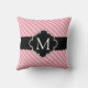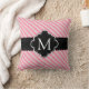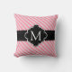 Girly Pink Stripes Pattern Black Custom Monogram Cushion