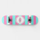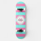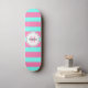 Girly Pink Teal Stripes Monogram Personalised Skateboard
