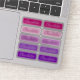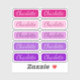 Set of 10 cute name labels. Five different colours from pink to lavender to shades of purple. The custom name is printed in a pretty cursive script. Personalise them with your own name and use on your devices, notebooks and other possessions. They will add a girly mark and a burst of bright cheerful colour to any item on which you decide to use them.