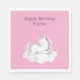 Girly Pink Unicorn on Cloud Birthday Napkin