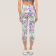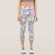 Girly Pink Violet Purple Gold Watercolor Flowers Capri Leggings