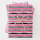 Girly Pink White Black Stripes Birthday Wrapping Paper Sheet