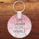 Girly Pink White Marble Glitter Sparkle Key Ring