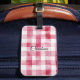 Girly Pink White Plaid Stripes Luggage Tag