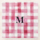 Girly Pink White Plaid Stripes Monogram Glass Coaster