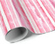 Girly Pink White Stripes Birthday Wrapping Paper
