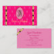 YOUR FAVORITE - Make a lasting impression with this elegant and luxury business card design featuring shimmery golden decor borders and oval frame. On the front matching monogram pattern on a girly pink background and the back is light pink.