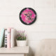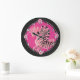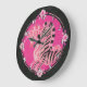 Girly Pink Zebras on Black Large Clock