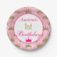 Girly Princess Hot Pink Gold Glitter 1st Birthday Paper Plate