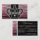 A girly zebra striped pattern in pink and black with a crown. on a Business card, Info goes of the back,