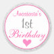 Girly Princess Pink & Silver Glitter 1st Birthday Classic Round Sticker