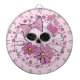 Cute girly punk skull and crossbones with bow, flowers, polka dots and plenty of pink for the ladies.
