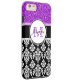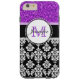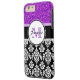 Girly Purple Glitter Black Damask Personalised Case-Mate iPhone Case